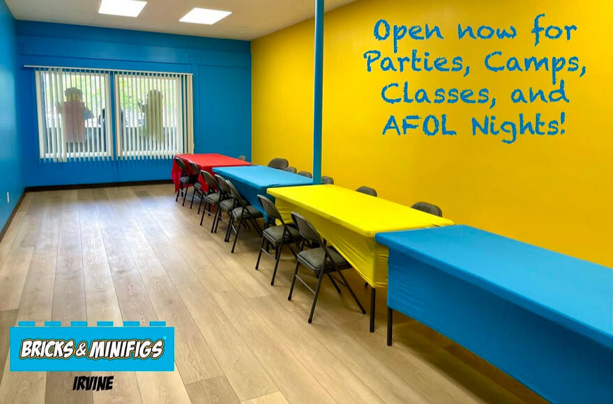 Our “Party Room” is now open for Parties, Camps, Classes, and AFOL Nights. More details below!